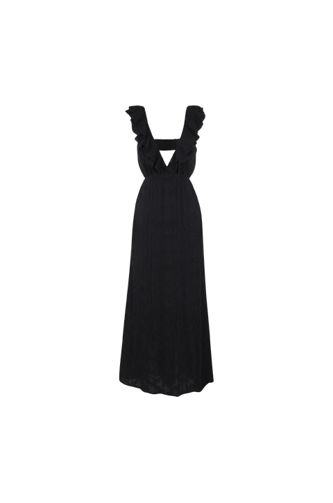 Cecilia Dress Black L Open back frill maxi dress