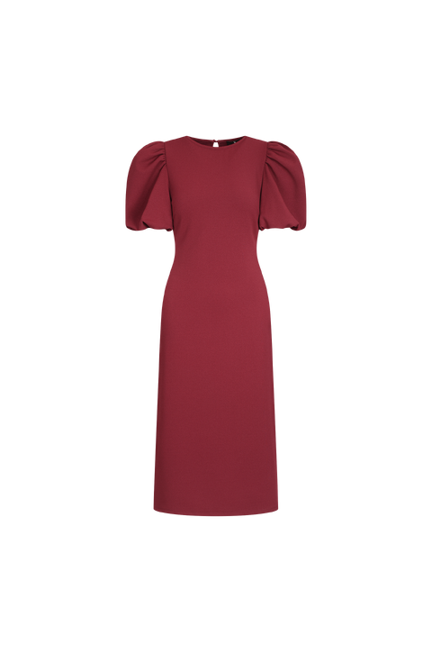 Cuba Dress Burgundy M Midi dress with puffed sleeves