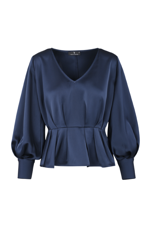 Kalinka Blouse Dark Navy M Oversized satin blouse
