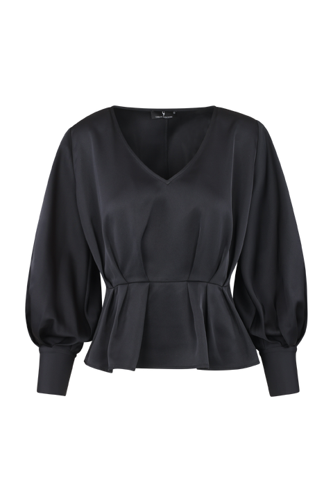 Mariella LS Blouse Black L Satin blouse with V-neck