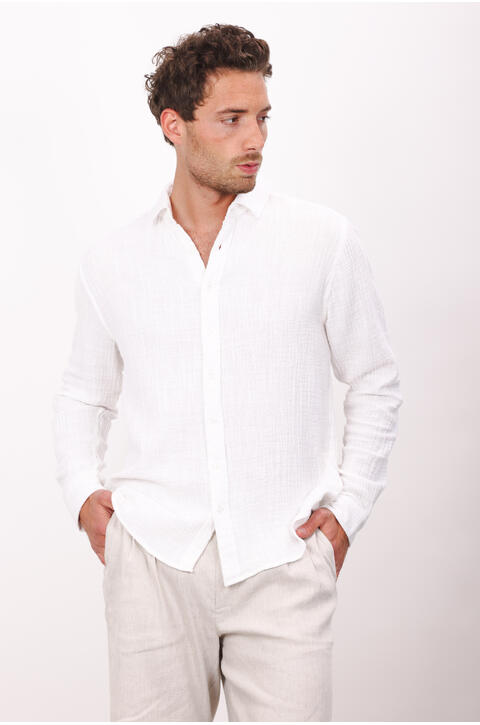 Kristian LS Shirt White L Cotton gauze LS shirt